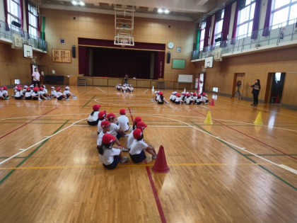 運動会に向けて、団体競技の「大玉ころがし」の練習をしています。
