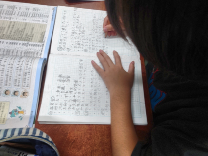 社会科の時間は、大阪府ではこれまでにどんな風水害が起こってきたのか、年表などの資料で調べました。