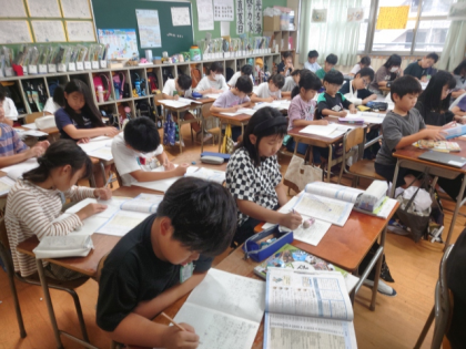 社会科の時間は、大阪府ではこれまでにどんな風水害が起こってきたのか、年表などの資料で調べました。