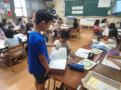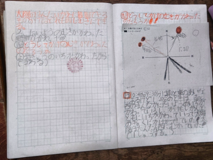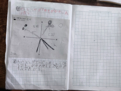 今日は、「どうしてかげの向きが変わったのか」という課題について、みんなで予想してから考えています。