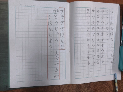 国語科の時間は、物語文「サラダで げんき」の学習をしています。