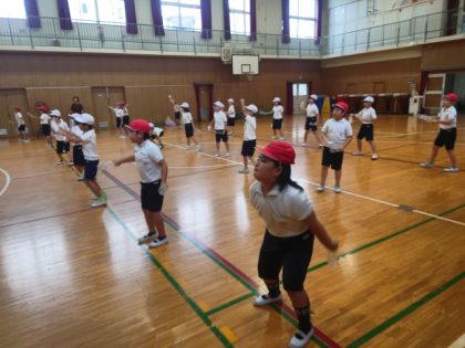 運動会に向けて、体育館でダンスの練習をしました。