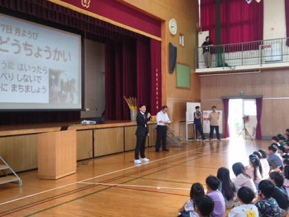 まず、本日より4週間、本校で実習を行う教育実習生を校長から紹介しました。