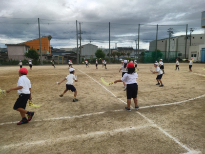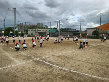 運動会に向けて、運動場でダンスの練習をしました。