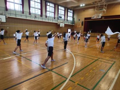 運動会に向けて、放課後に応援の練習をしています。