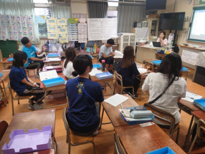 放課後に、若手を中心とした教員が集まり、月1回のペースで研修会を開いています。