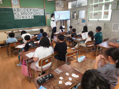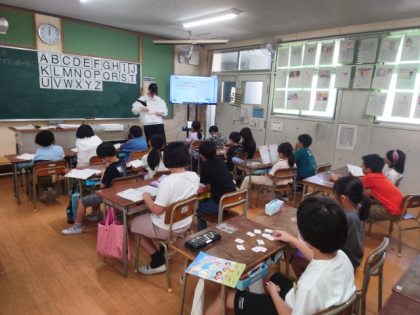 英語活動の時間は、26字あるアルファベットの大文字を仲間分けしました。