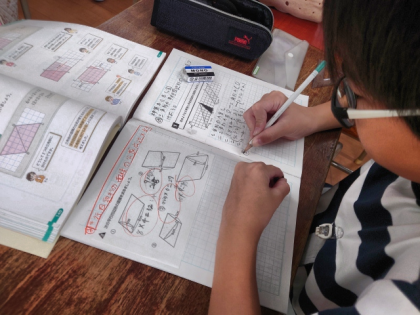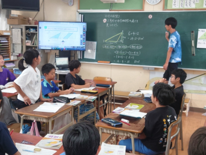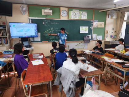 算数科の時間は、三角形の面積をどのように求めればよいのか考え、三角形の面積の公式をつくりました。
