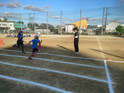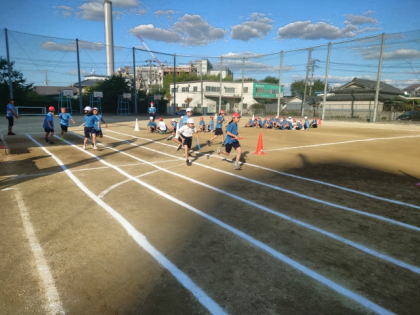 運動会に向けて、運動場でソーランやリレーの練習をしました。