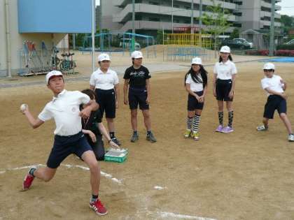 6年生はソフトボールなげ、50メートル走とも迫力ありますね。一生懸命に取り組んでいました。