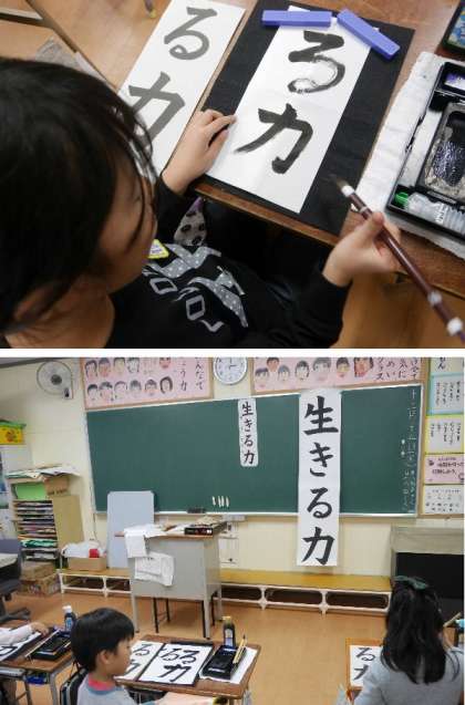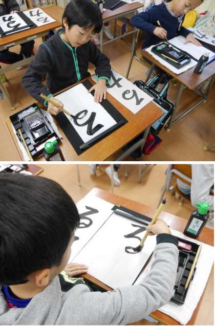 3年生が習字の練習をしています。とてもきれいに書けるようになってきました。