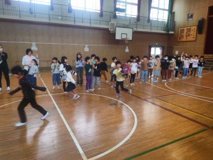 最後に、1・2年生全員が集まって、終わりの式をしています。