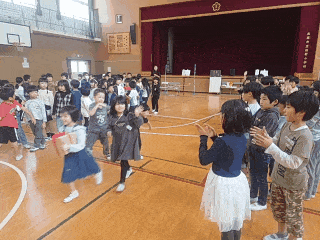 2年生があいさつをしたり、1年生が「ありがとう」とお礼を言ったりしました。