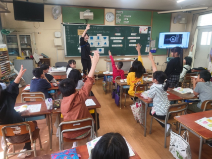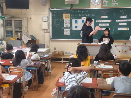 外国語活動の時間は、"What do you want.""How many?"など、形とほしいものを表す英語の表現について学習しました。