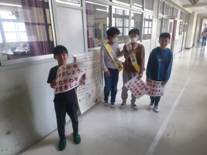 健康委員会の子どもたちの声かけで、全校のみんなで校舎内は歩くことを意識できたらいいですね。