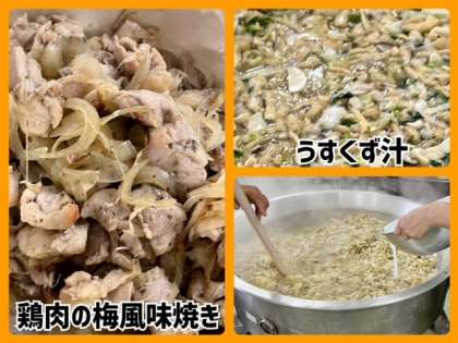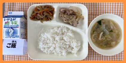今日の献立は、鶏肉の梅風味焼き・うすくず汁・きんぴらこぼう・ごはん・牛乳でした。