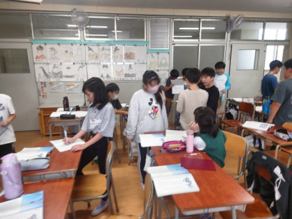 子どもたちは、自分の考えをしっかりとノートを書き、意見を出し合って交流しました。