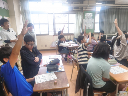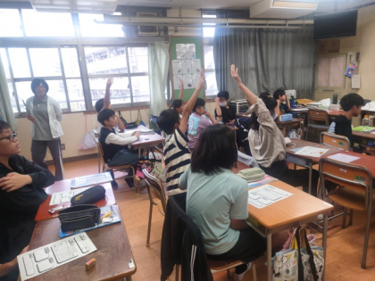 子どもたちは、「飛行機は輸送時間は短いが費用が高い」「船は輸送時間は長くかかるが、安く大量に運べる」などの輸送方法の特徴や、「高速道路が全国に広がっている」「空港や港は都市部に集まっている」など交通網の広がりについて気付くことができました。