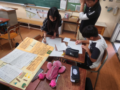 これまで、子どもたちは世界にはどんな学校があるのか、本やインターネットで調べました。
