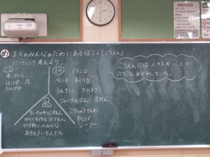 生活科の時間は、「町のみんなのためにある場所」について学習しています。