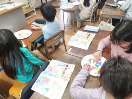 実際にいろいろな色・形をしたカードを使いながら、