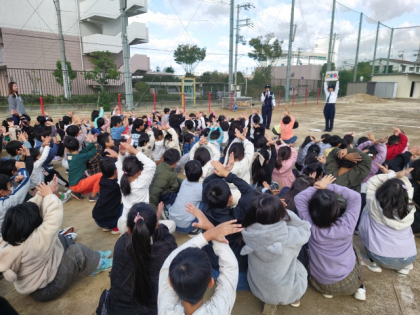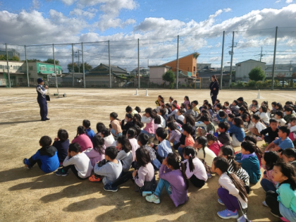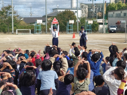 鶴見警察署の警察官の方に来ていただき、交通安全指導を行いました。