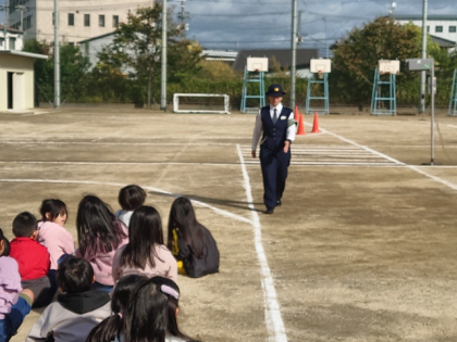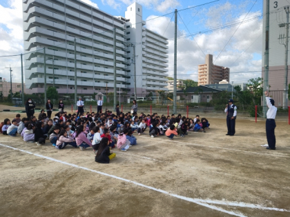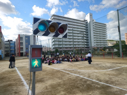鶴見警察署の警察官の方に来ていただき、交通安全指導を行いました。