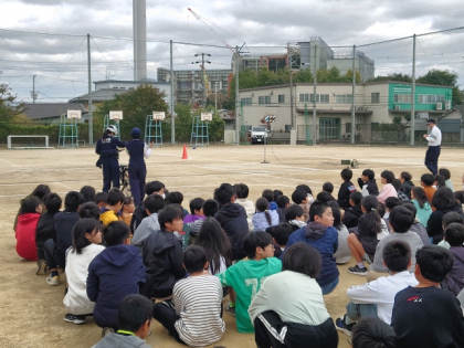 鶴見警察署の警察官の方に来ていただき、交通安全指導を行いました。