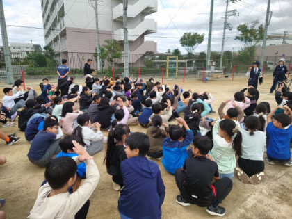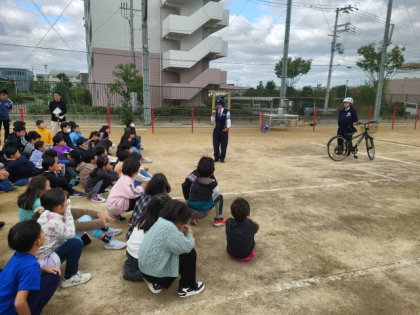 鶴見警察署の警察官の方に来ていただき、交通安全指導を行いました。