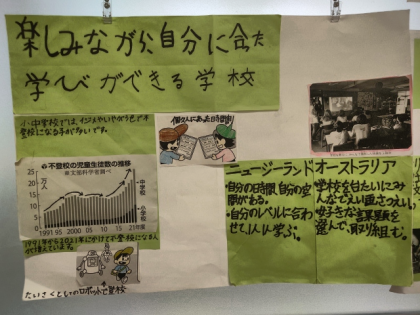 「楽しみながら自分に合った学びができる学校」グループの発表のようすです。