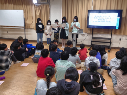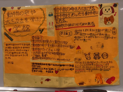 「動物の命や大切さを学ぶ学校」グループの発表のようすです。