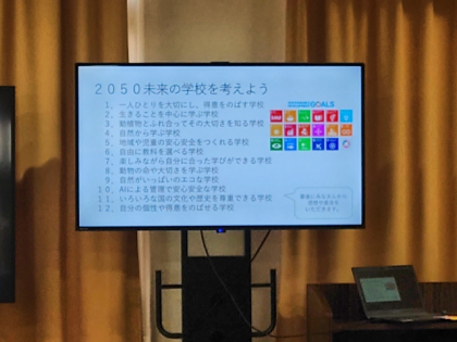 今日は、これまでの総まとめとなる「未来の学校」の発表会です。