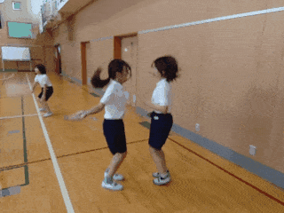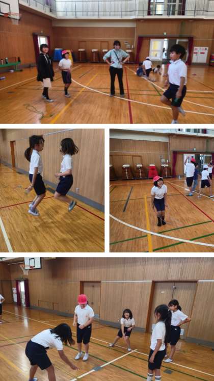 大なわとびをしたり、2人組でとんだりいろいろな技に挑戦しています。