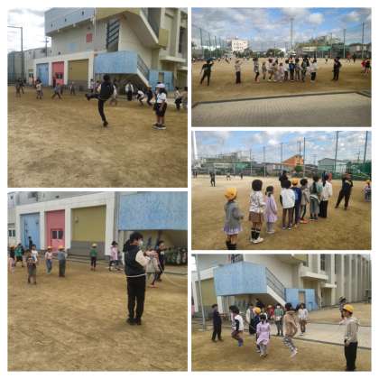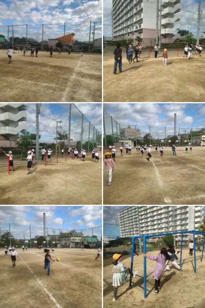 子どもたちが元気に外遊びしています。