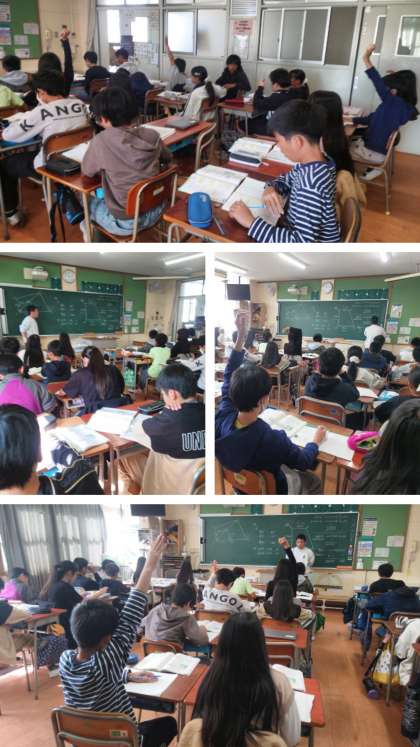 算数科の時間は、「図形の拡大と縮小」の学習の終わりに、教科書の「学びのまとめ」の問題を解いています。