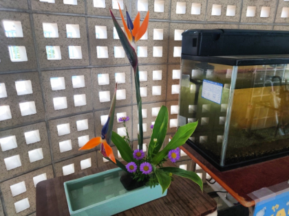 地域の方が玄関の生け花を活けていただいています。