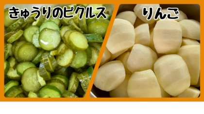 「きゅうりのピクルス」は、ゆでたきゅうりを砂糖、塩、ワインビネガー、うすくちしょうゆで作った調味液につけ、十分味を含ませています。