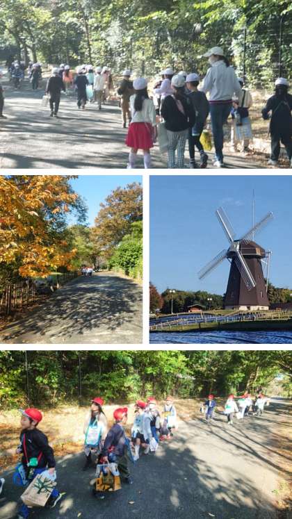 今日は、1年生のみんなで鶴見緑地へ「秋」を見つけに行きました。