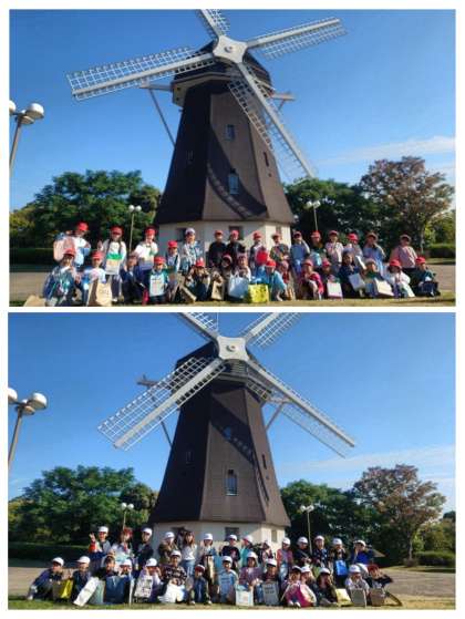 風車の前で、みんなで記念撮影をしてから、学校に戻りました。