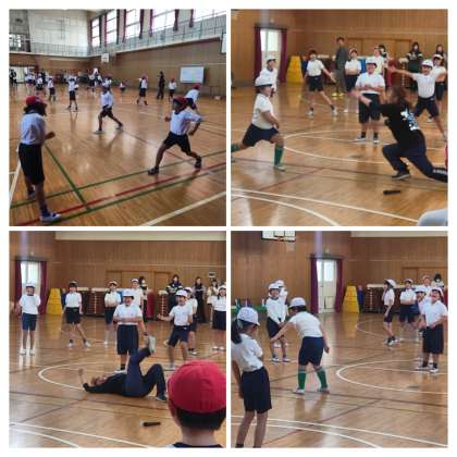 次に、指導者の話に合わせて体を動かしたり、「イメージかるた」をめくってカードに書かれている動きを考えたりして、大きく動いたり変化を付けたりして体全体で表現しました。