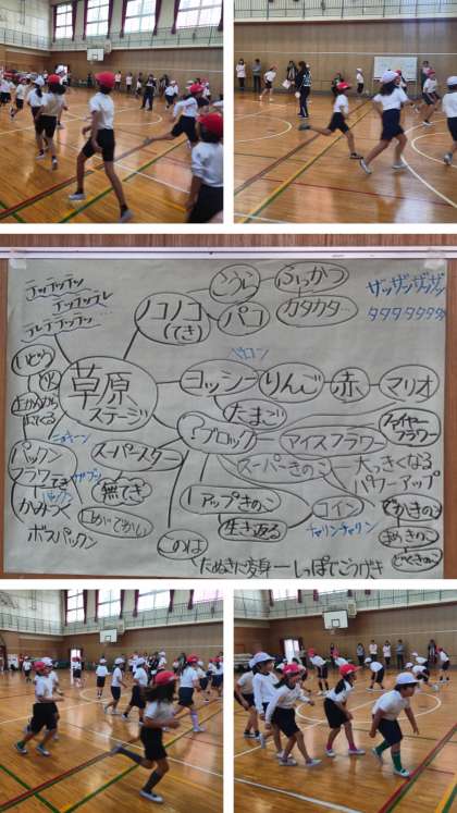 今日のめあては「体を大きく使って、草原ステージをクリアしよう!」。