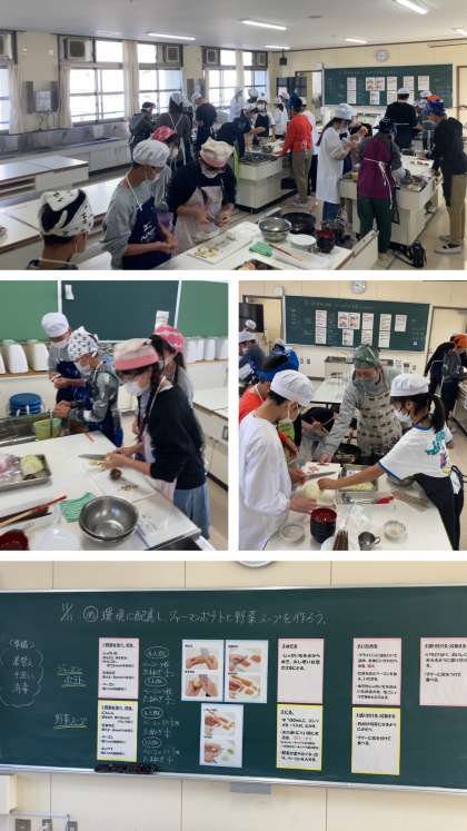 今日のめあては「環境に配慮し、ジャーマンポテトと野菜スープをつくろう」です。