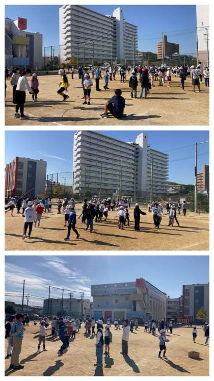 高学年の子どもたちがリードし、低学年の子どもたちが上手に跳べるようにやさしく接しながら、班のメンバーで仲良く楽しくすごしていました。