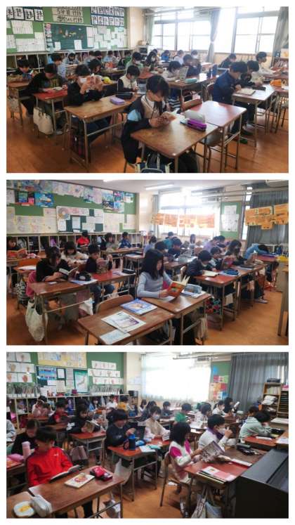 子どもたちが自分の席で、静かに本を読んでいます。