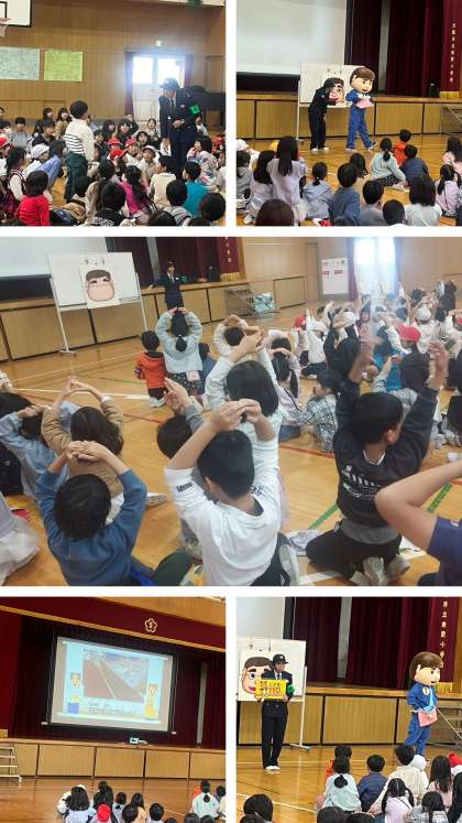 最後に、「1人で遊ばない」「知らない人についていかない」「つれていかれそうになったら、大声で知らせる」「だれと、どこであそぶ、いつ帰る、をお家の人に言ってから出かける」「友達がつれていかれそうになったら、すぐに大人の人に知らせる」の、自分の身を守るための5つの約束についてビデオを見て学びました。