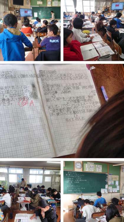 社会科の時間は、工場では、働く人のことを考えて、どのような工夫がされているのか、教科書などで調べました。