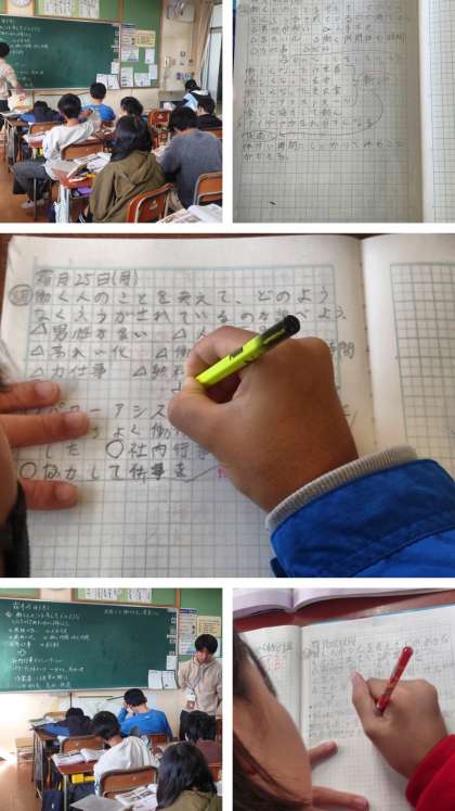 教科書の事例では、食堂や更衣室を新しく快適にしたり、作業着に道具を入れることができるポケットをつけたり、パワーアシストスーツを着て作業したりするなどの工夫をしていることがわかりました。