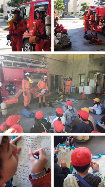 子どもたちは、消防署の方がお話されたことをしっかりメモしていました。