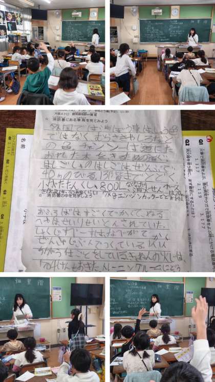 教室に戻って、見学のまとめをしています。