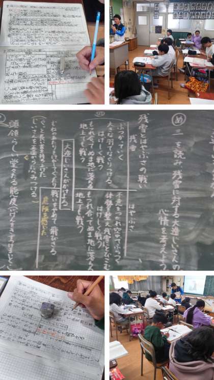 子どもたちは、物語を内容を深く読み取ったり、考えたことをしっかりノートに書いたりして、一生懸命学習していました。
